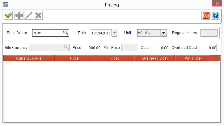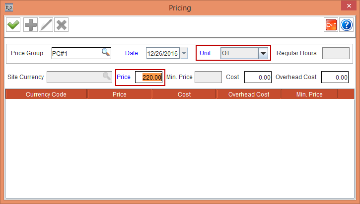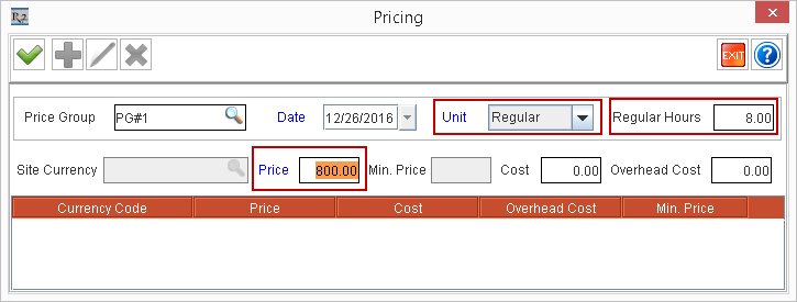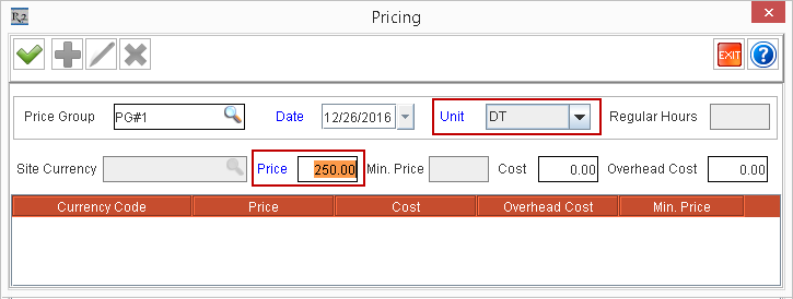 | Price Group | Effective Date | Unit | Price | Regular Hours | Screen Shots |