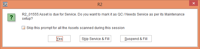 When an Asset is due for Service and a prompt is displayed while filling an Asset having Schedules expired. A new button Do Nothing is added to perform no Asset filling. This is, as shown in the Figure 3.1.