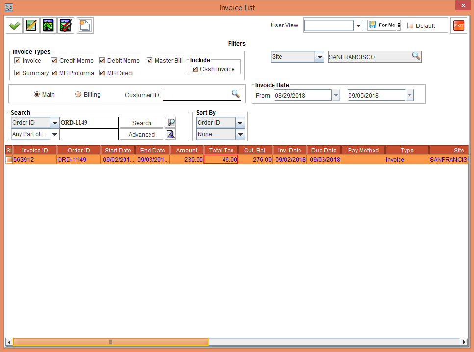 Click the Add Invoice button > the Invoice List window appears > select the Invoice, as shown in Figure 1.12.