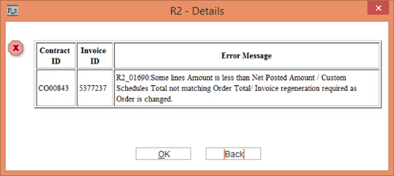 NOTE: If the Sub-Order have Variance then, the system display R2 - Details window with error message, as shown in Figure 1.15.