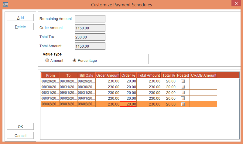 Click the Customize button > the Customize Payment Schedules window appears > create 5 Schedules, as shown in Figure 1.3.