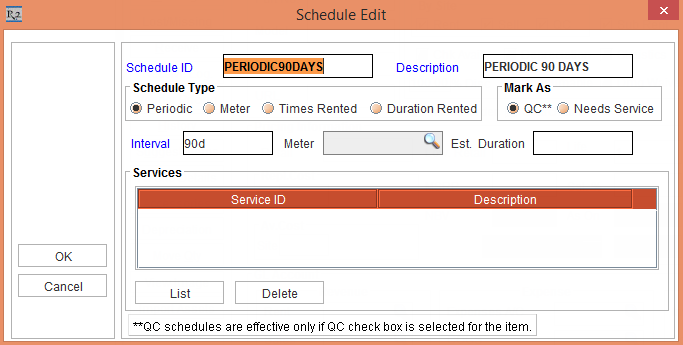 The Status of Asset [CRANE#1-1] will be marked as IN from QC. The system writes the expired Service Schedule ID - PERIODIC90DAYS to the Service History of the Asset [CRANE#1-1] and consider the service as done for the schedule for this period. For the Asset [CRANE#1-2], since there are no expired Service Schedule, it would create the Quick Service Ticket but no Service Schedule will be affected.