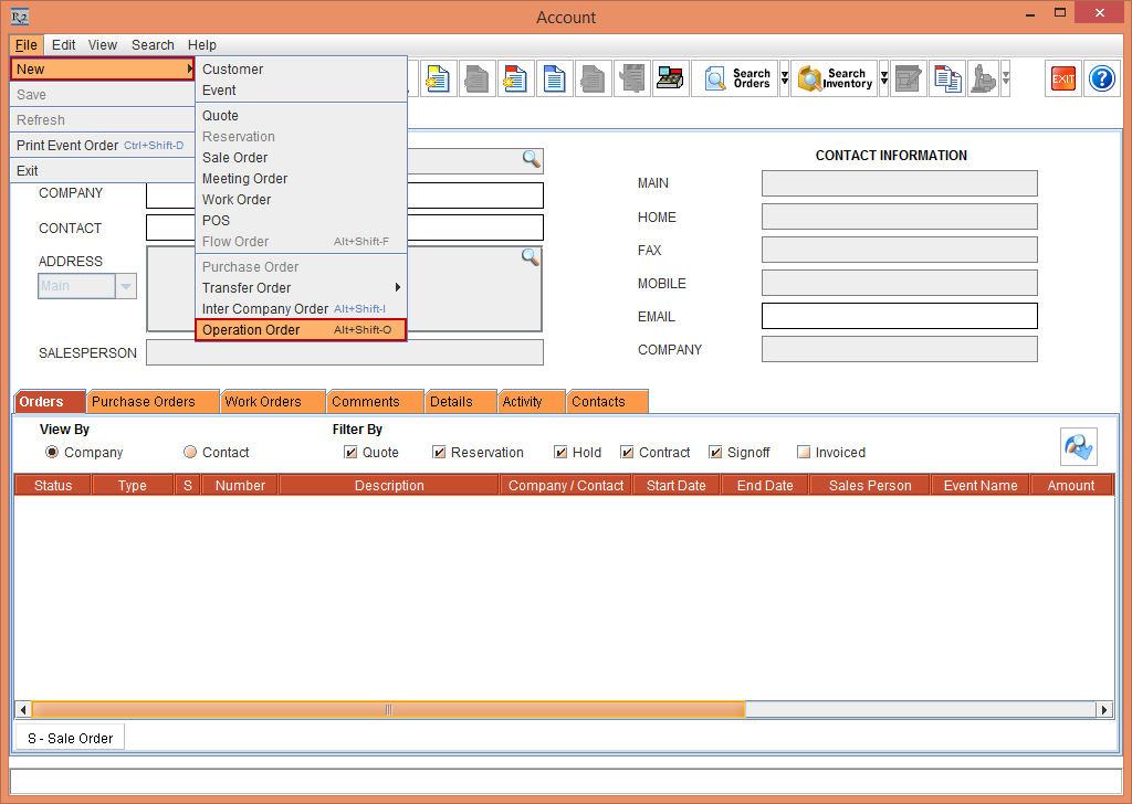 Select the Account module. The Account window is displayed.