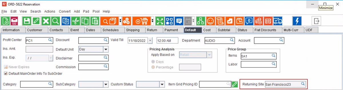 Now you can mention a default Returning Site for Events Orders, so that all Orders generated because of it (irrespective of the department involved) can chose the return site and items may be dispatched accordingly.