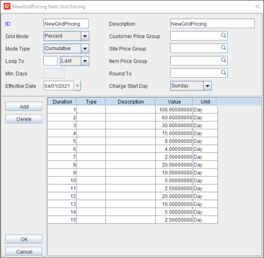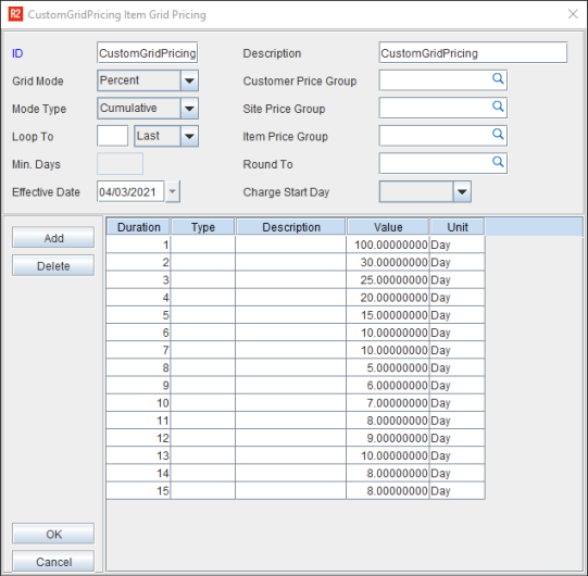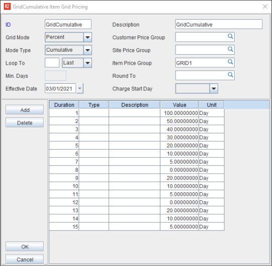 For this CID, the Grid Pricing setup must done with Grid Mode as Percent and Mode Type as Cumulative.