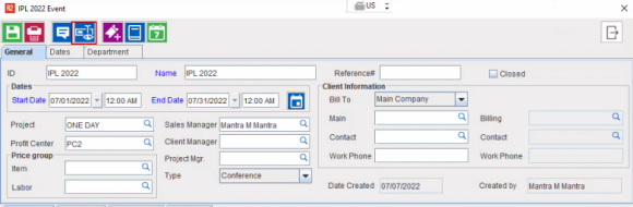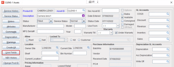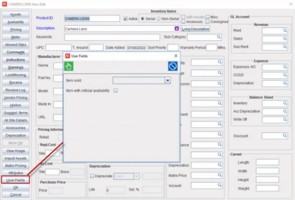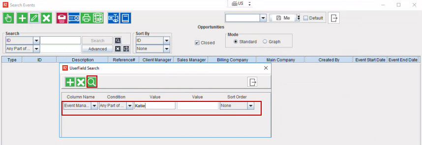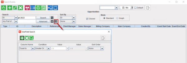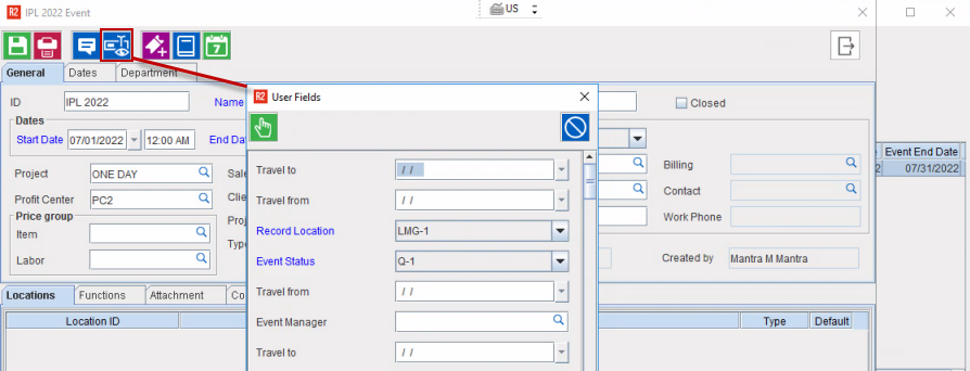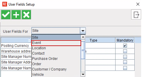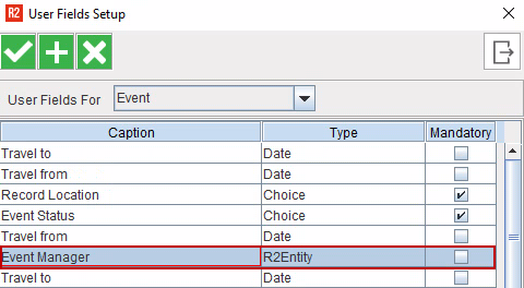 1. Now open 'Events' window, click User Fields and the defined field is displayed.