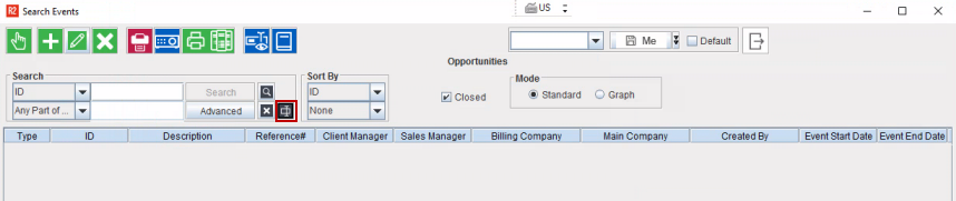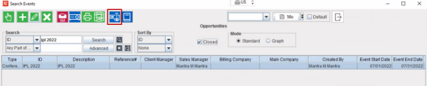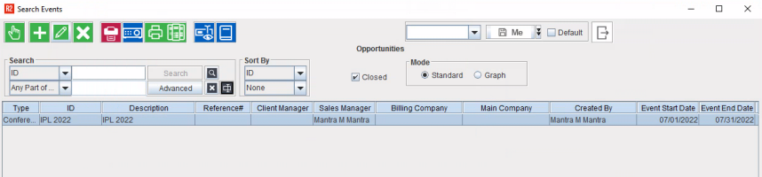 The sample search flow is explained for Event entity. The same steps can be followed to search in all other entities.