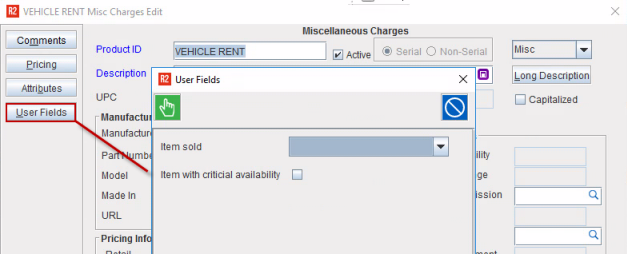 In R2, system allows you to create customized fields to take input from users on values which were not part of the entity like Order, site etc.,These fields are called 'User Defined' fields or UDFs.
