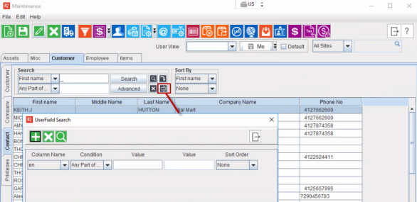 2. Select the Column name i.e, User Field name on which you want to search the item.