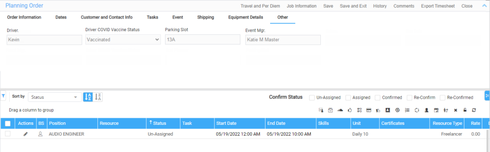 Please reach out to Unibiz PM to create required UDFs to displays in Planning Order window. |