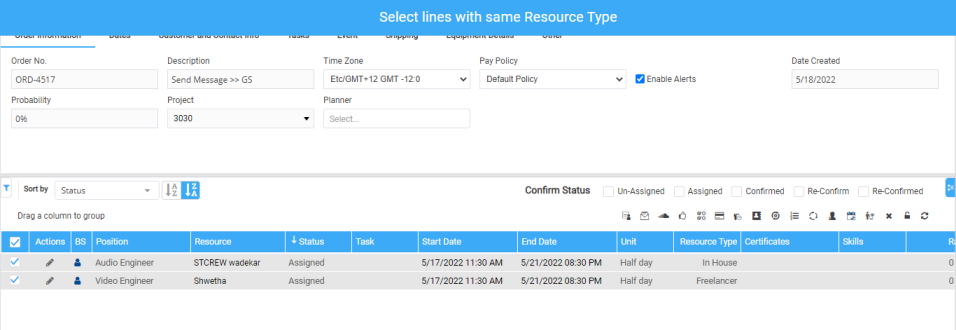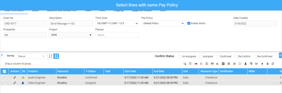 If selected lines 'Unit', 'Resource Type', and 'Pay Policy' is same.