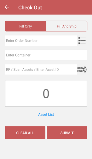 Use the 3rd party RFID reader to feed Items/Asset (needed to be checked-out) information to the Asset Manager App.