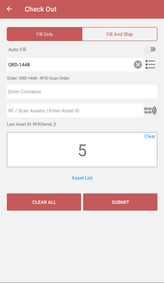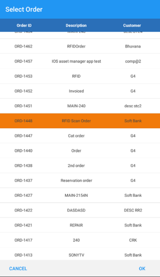 Similarly, the app can perform a Check-in operation where a list of assets are returned on a Order.