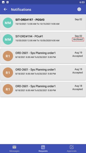 Approvals: These are confirmation requests sent by Labor Planner or Project Manager, in response to your acceptance/rejection of requests.