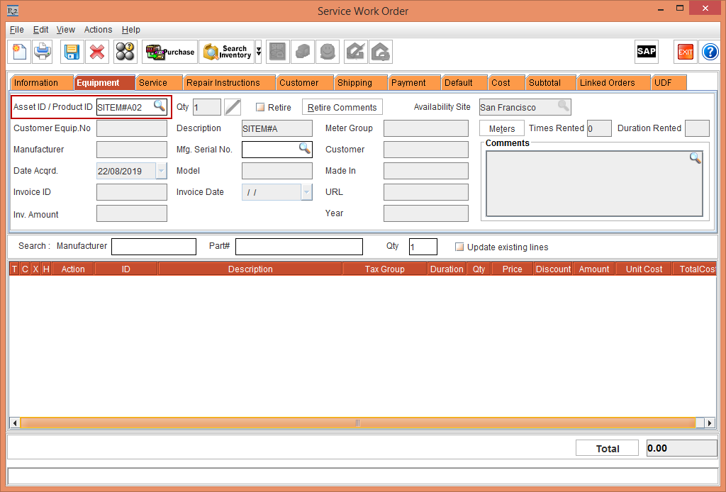 Search and tag the Asset [SITEM#A01], as shown in Figure 1.1.