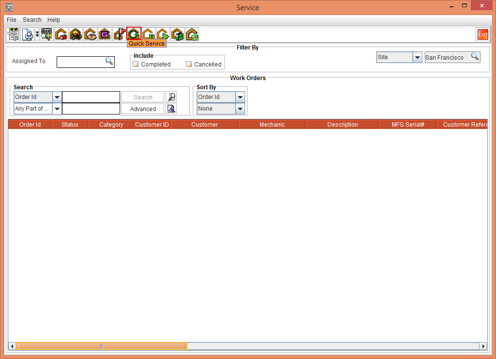 The Quick Service window is displayed as shown in Figure 3.5.