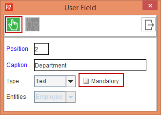 The system displays the User Field Setup dialog box. (As shown in Figure 2.0).
