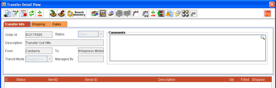 In the Warehouse module, many options have been provided to enable you to make alterations to transfer orders. You can remove lines from existing transfer orders or cancel the transaction and delete the transfer order record itself, mark assets as missing and view Transfer Order History.