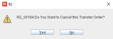 If Return Transfer Order is not present the 'Cancel Transfer Order' prompt is displayed.