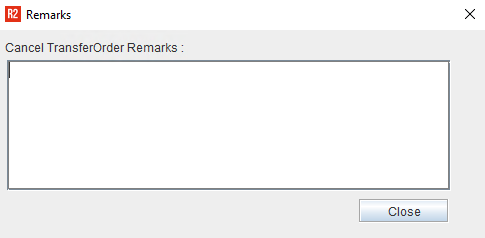 The 'Remarks' window is displayed. Here you can enter remarks or comments about cancelling the order.