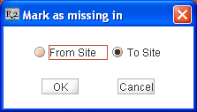 R2 will display Mark as Missing in dialog box wherein the you can select the Transfer Site in which the item should be marked as missing, select an option accordingly.