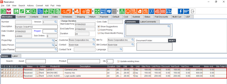 Create an Order and add items/assets.