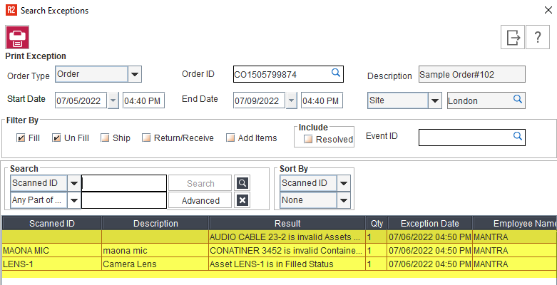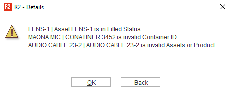 Instead of filling each and every individual asset/product in R2, the Warehouse Manager scans the assets and products. The scanner loads the asset and product details such as Asset / Product ID along with its quantity.