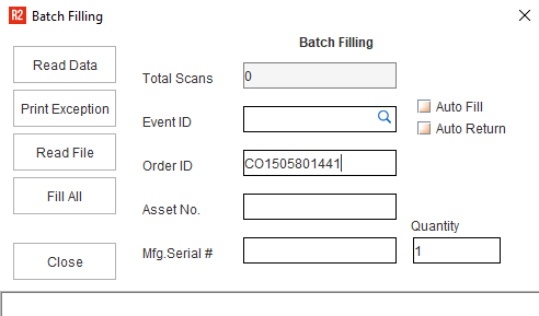 Once the file is processed successfully, you can proceed to enter the other Order ID in the Batch Filling window to fill the items.